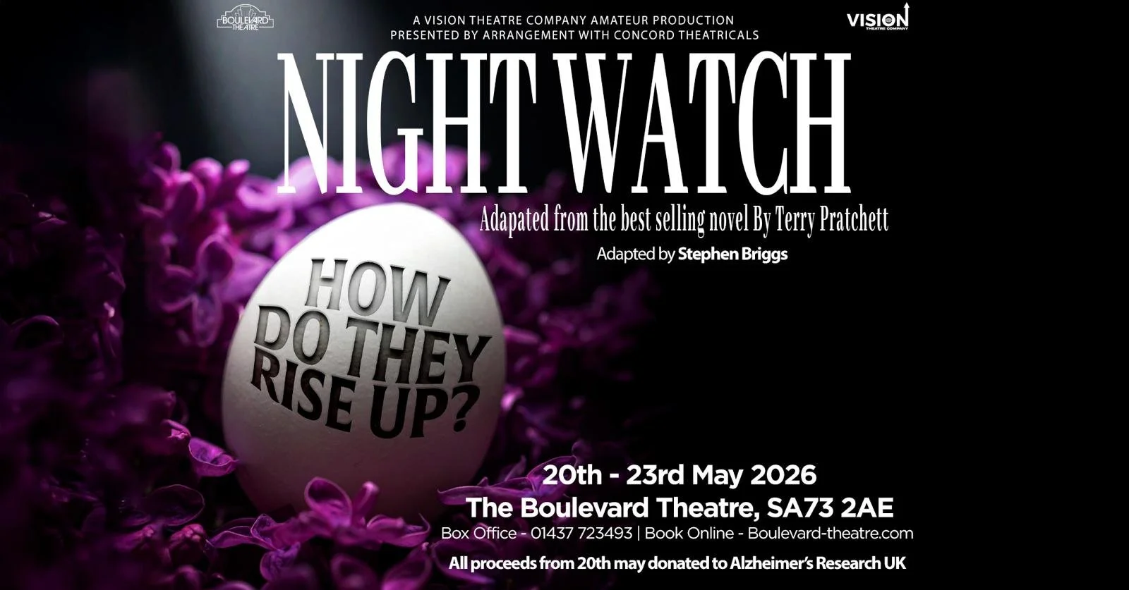 Following sold-out runs of Wyrd Sisters and Men at Arms, Vision Arts brings Terry Pratchett’s most celebrated and critically acclaimed novel to the stage: Night Watch.